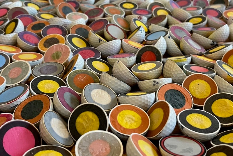 Ich bin seit über 25 Jahren als Golflehrer tätig. Bei einer Fortbildung habe ich den inneren Aufbau verschiedener Golfbälle kennengelernt. Sehr überraschend war allerdings wie viele Farbnuancen sich hinter der weissen Aussenhülle verstecken...